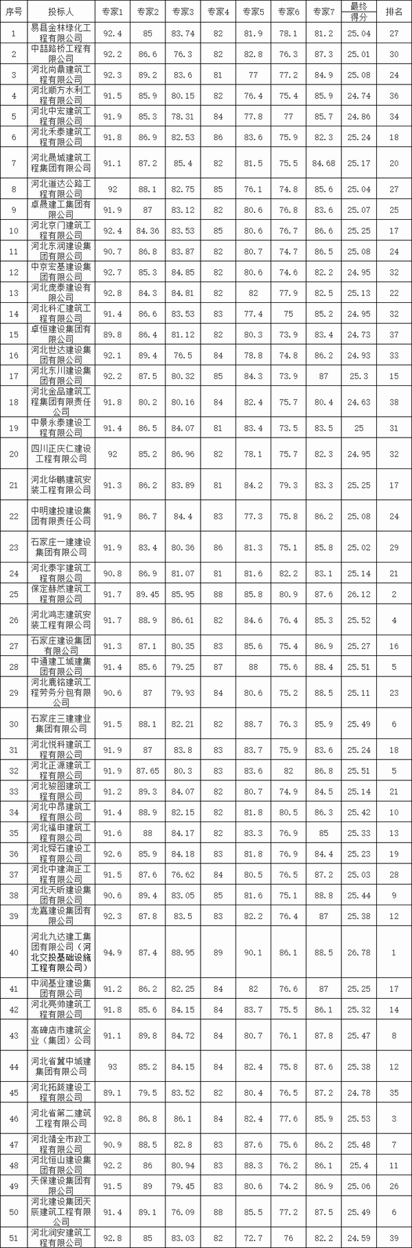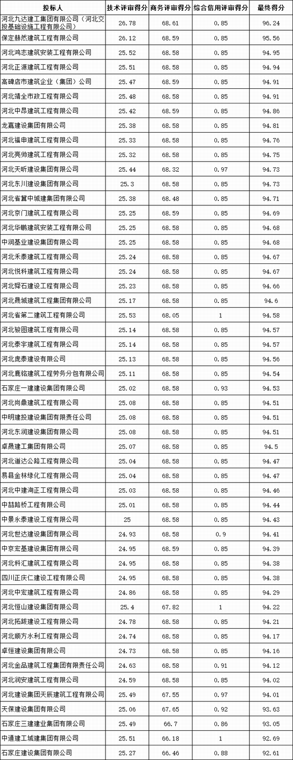 第一中標(biāo)候選人:河北九達(dá)建工集團(tuán)有限公司(聯(lián)合體成員:河北交投基礎(chǔ)設(shè)施工程有限公司);