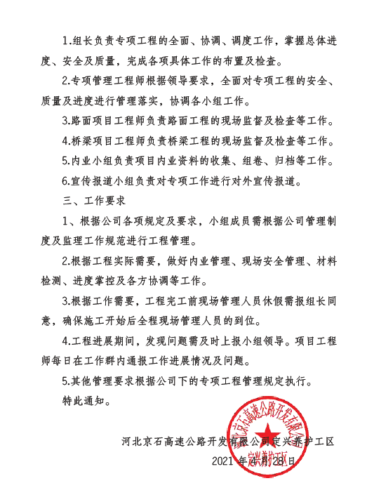 河北京石高速公路開發(fā)有限公司定興養(yǎng)護(hù)工區(qū)關(guān)于成立K103 586_K103 784增設(shè)聲屏障工程管理小組的通知