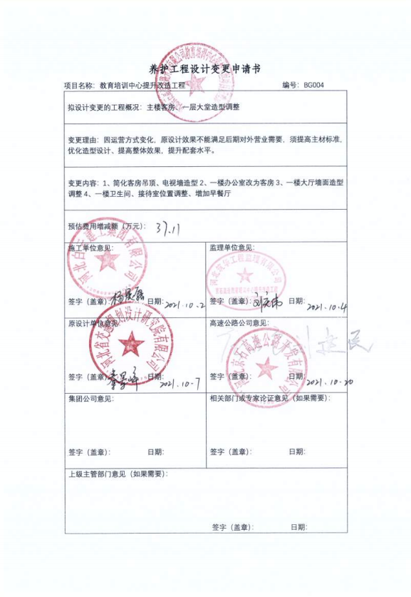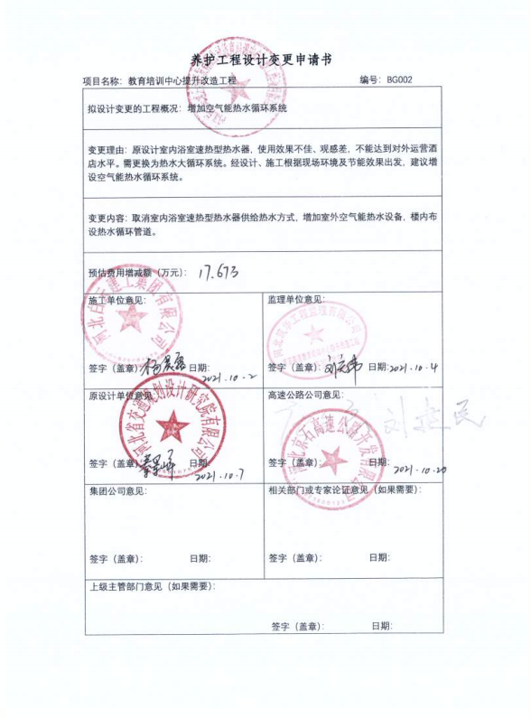 河北京石高速公路開發(fā)有限公司教育培訓(xùn)中心提升改造工程一期設(shè)計(jì)變更