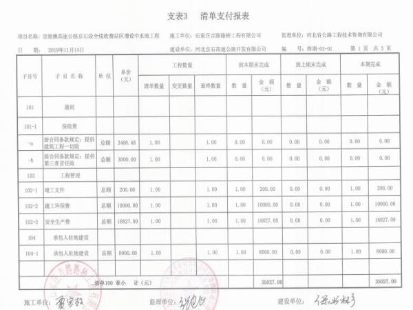 京港澳高速公路京石段全線收費(fèi)站區(qū)增設(shè)中水池工程支付證書