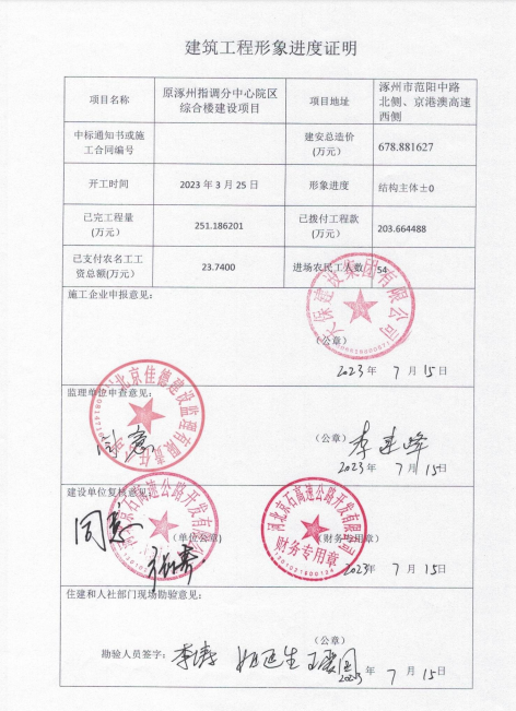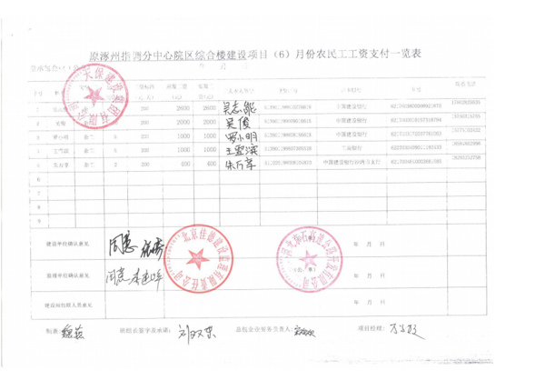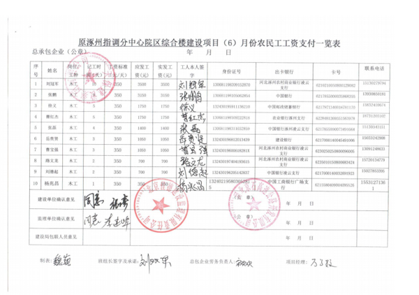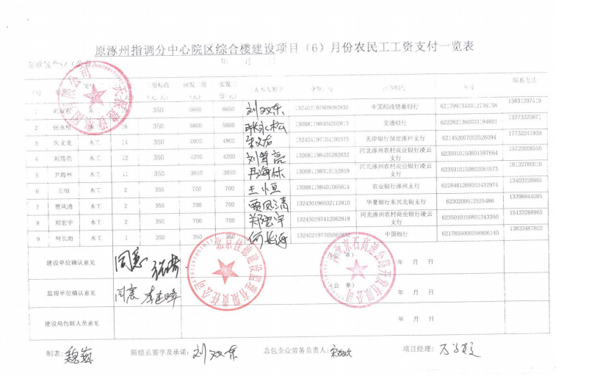 原涿州指調(diào)分中心綜合樓建設(shè)項(xiàng)目6月份農(nóng)民工工資發(fā)放公示