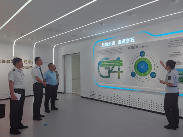 朱斌一行首先參觀了京石公司智慧調(diào)度大廳,深入了解了路警聯(lián)合運(yùn)行機(jī)制流程,實地觀摩了智慧監(jiān)控、應(yīng)急調(diào)度、數(shù)據(jù)研判等功能模塊的協(xié)同運(yùn)作。隨后前往企業(yè)展廳,系統(tǒng)了解了京石公司的發(fā)展藍(lán)圖、企業(yè)文化,及近年來在創(chuàng)新創(chuàng)效和科技研發(fā)領(lǐng)域取得的豐碩成果。