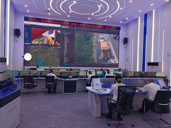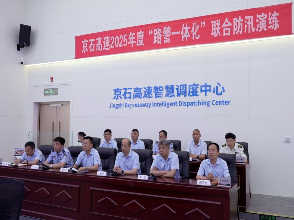 此次演練采取實戰(zhàn)聯(lián)合、多點同步的演練方式,同時進行高速公路邊坡水毀、上游泄洪危及橋梁、收費站站區(qū)防汛三種突發(fā)事件的應急演練,由智慧調度中心啟動聯(lián)合演練,路警聯(lián)合指揮中心實施指揮調度。