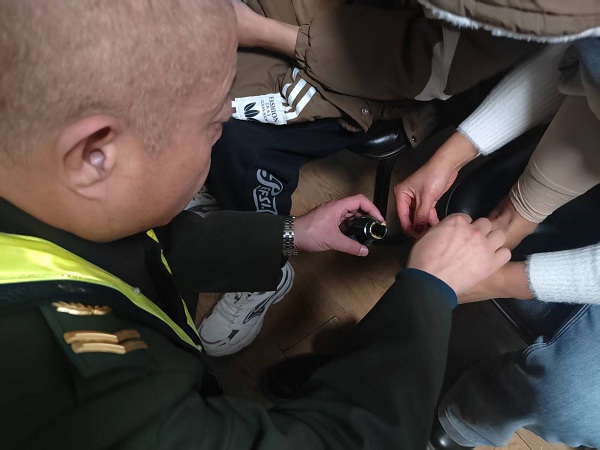 “別著(zhù)急,我們馬上幫您處理!”李偉一邊安撫陳女士的情緒,一邊攙扶陳女士到便民服務(wù)崗亭,拿出應急藥箱熟練地用碘伏為陳女士清理傷口,涂抹消腫止痛藥膏,并用彈性繃帶進(jìn)行固定包扎?!疤鞖膺@么冷,您先在便民服務(wù)崗亭里暖和一下,我們馬上幫助聯(lián)系您的家人?!彪S即,李偉聯(lián)系了陳女士的家人。