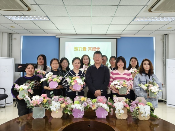 活動(dòng)以“春日來(lái)信 — 與花對(duì)話遇見(jiàn)更好的自己”為主題,于3月7日上午9點(diǎn)在會(huì)議室準(zhǔn)時(shí)拉開(kāi)帷幕?,F(xiàn)場(chǎng)布置溫馨雅致,充滿了春日的氣息。18 位女職工齊聚一堂,在輕松愉悅的氛圍中開(kāi)啟了這場(chǎng)特別的活動(dòng)之旅。